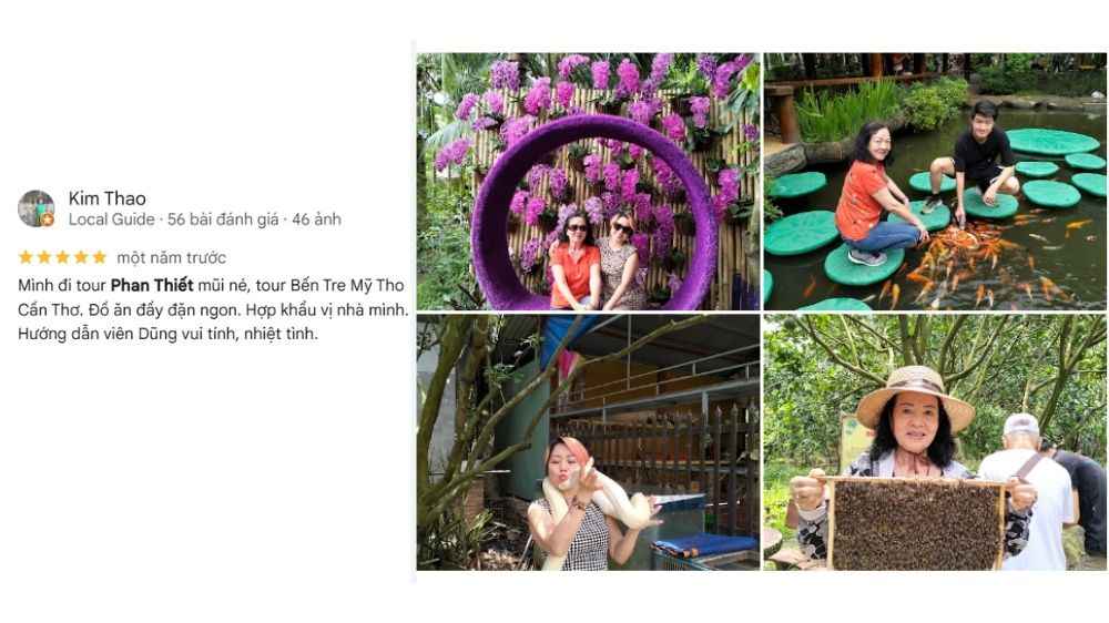 Mình đi tour Phan Thiết mũi né, tour Bến Tre Mỹ Tho Cần Thơ. Đồ ăn đầy đặn ngon. Hợp khẩu vị nhà mình. Hướng dẫn viên Dũng vui tính, nhiệt tình.