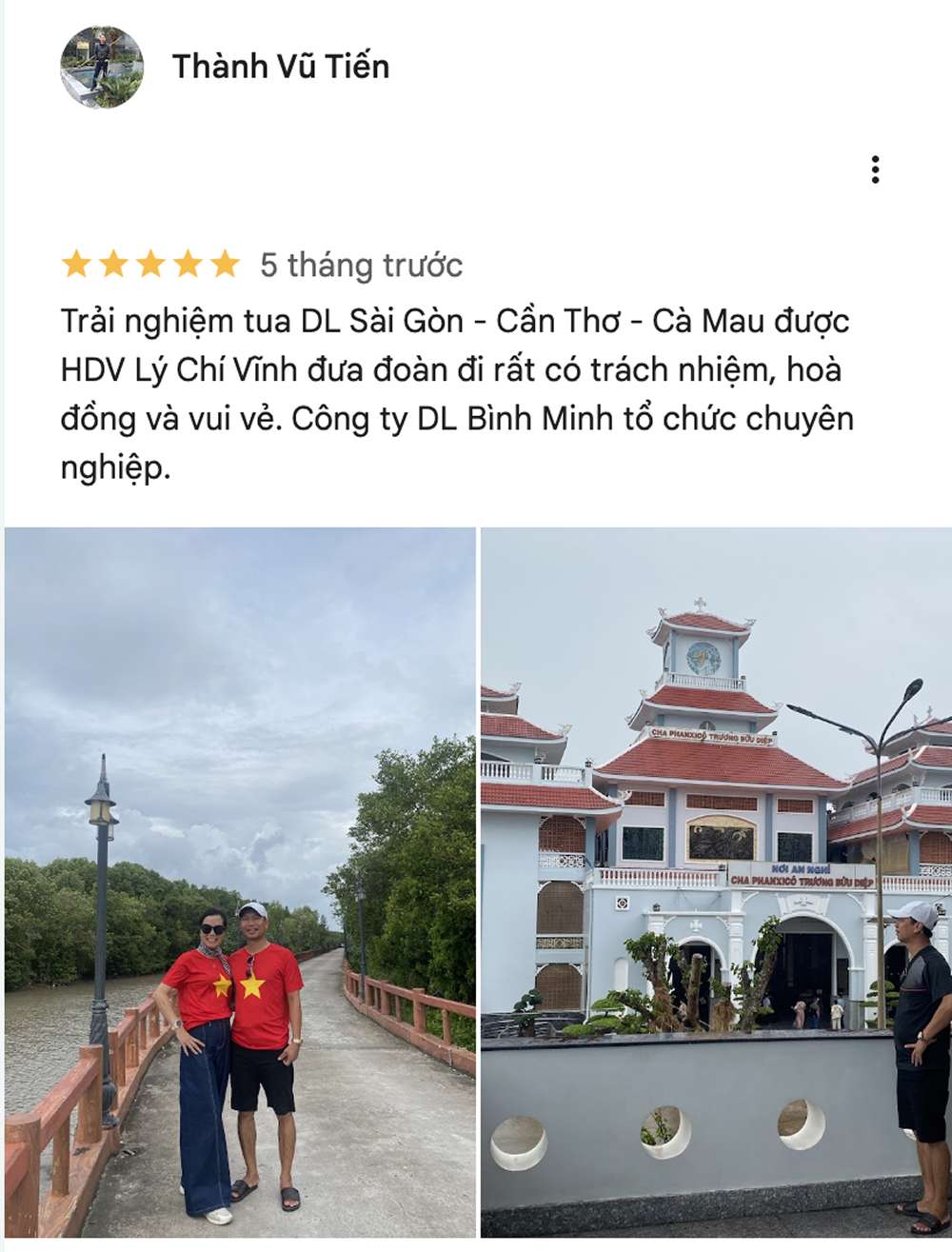 Trải nghiệm tua DL Sài Gòn - Cần Thơ - Cà Mau được HDV Lý Chí Vĩnh đưa đoàn đi rất có trách nhiệm, hoà đồng và vui vẻ. Công ty DL Bình Minh tổ chức chuyên nghiệp.