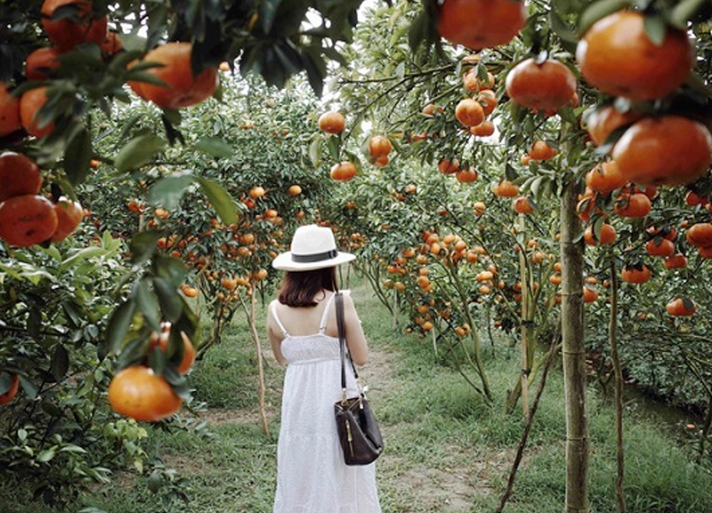 Tha hồ chụp hình với vườn quýt sai trĩu quả – có những trái sà xuống gần mặt đất