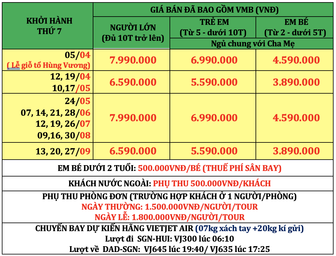 🗓 Khởi Hành Định Kỳ: Thứ 7 Hàng Tuần